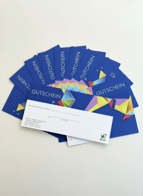 - Nach Zahlungseingang bekommen Sie den Gutschein als PDF zum Ausdrucken oder auf Wunsch als hochwertige Karte per Post.